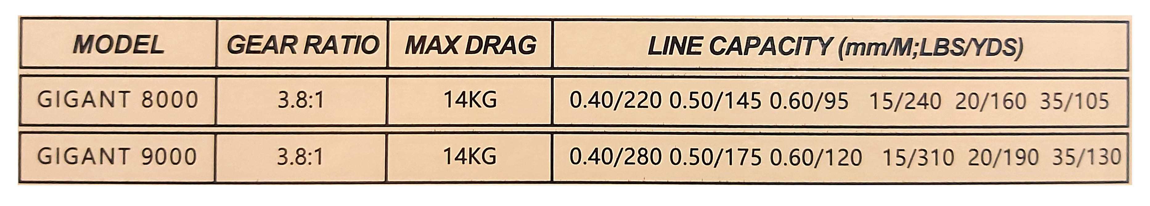 Gıgant 9000 0,40/280 0,50/175 0,60/120 metre Misina sarım kapasitesi vardır.
